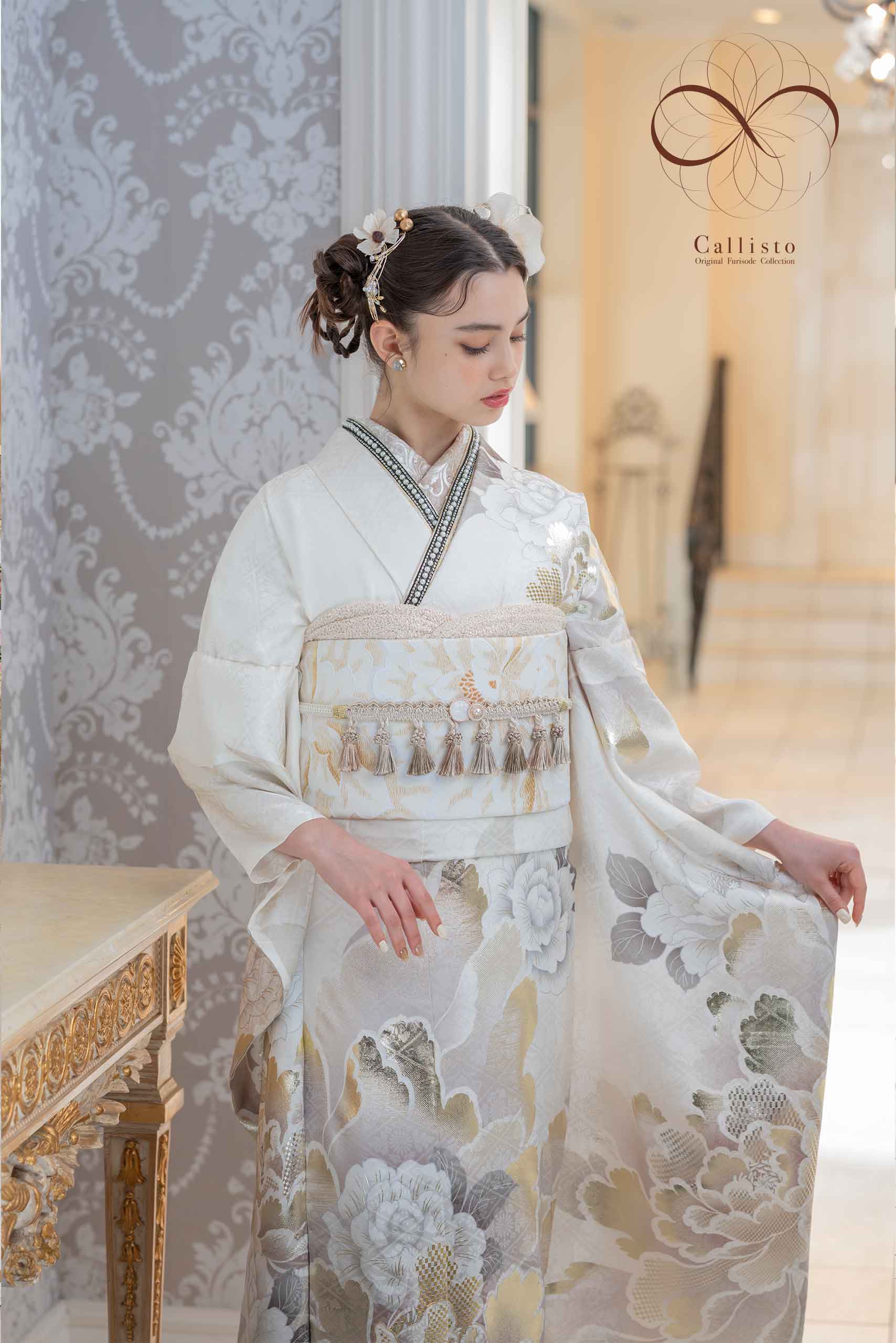 - 写真のコーディネート(帯・帯締め・帯揚げ・重ね襟・半襟・履物・バッグ・ショール等の振袖小物類及び髪飾り・アクセサリー類)は撮影用で、実際のセット内容とは異なります。またコーディネイトの内容により価格が変動する場合がございます。