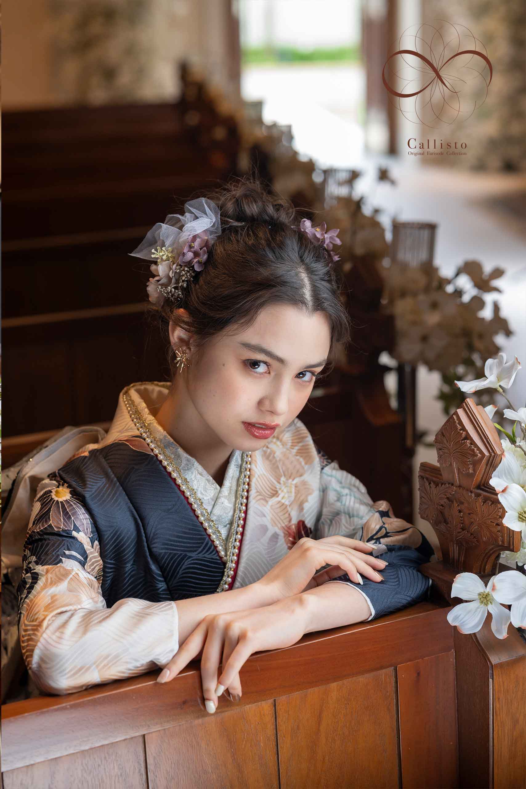 - 写真のコーディネート(帯・帯締め・帯揚げ・重ね襟・半襟・履物・バッグ・ショール等の振袖小物類及び髪飾り・アクセサリー類)は撮影用で、実際のセット内容とは異なります。またコーディネイトの内容により価格が変動する場合がございます。