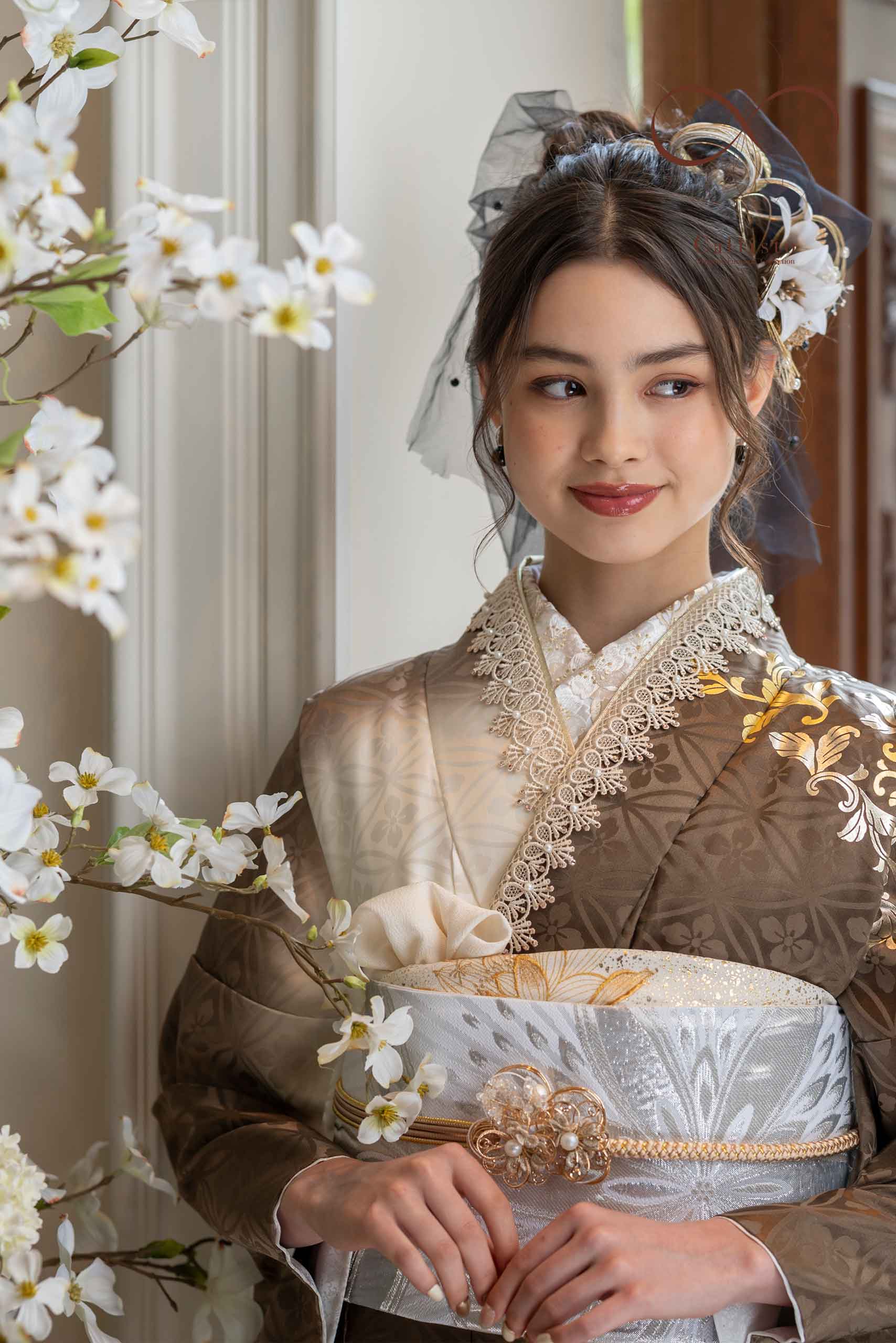 - 写真のコーディネート(帯・帯締め・帯揚げ・重ね襟・半襟・履物・バッグ・ショール等の振袖小物類及び髪飾り・アクセサリー類)は撮影用で、実際のセット内容とは異なります。またコーディネイトの内容により価格が変動する場合がございます。