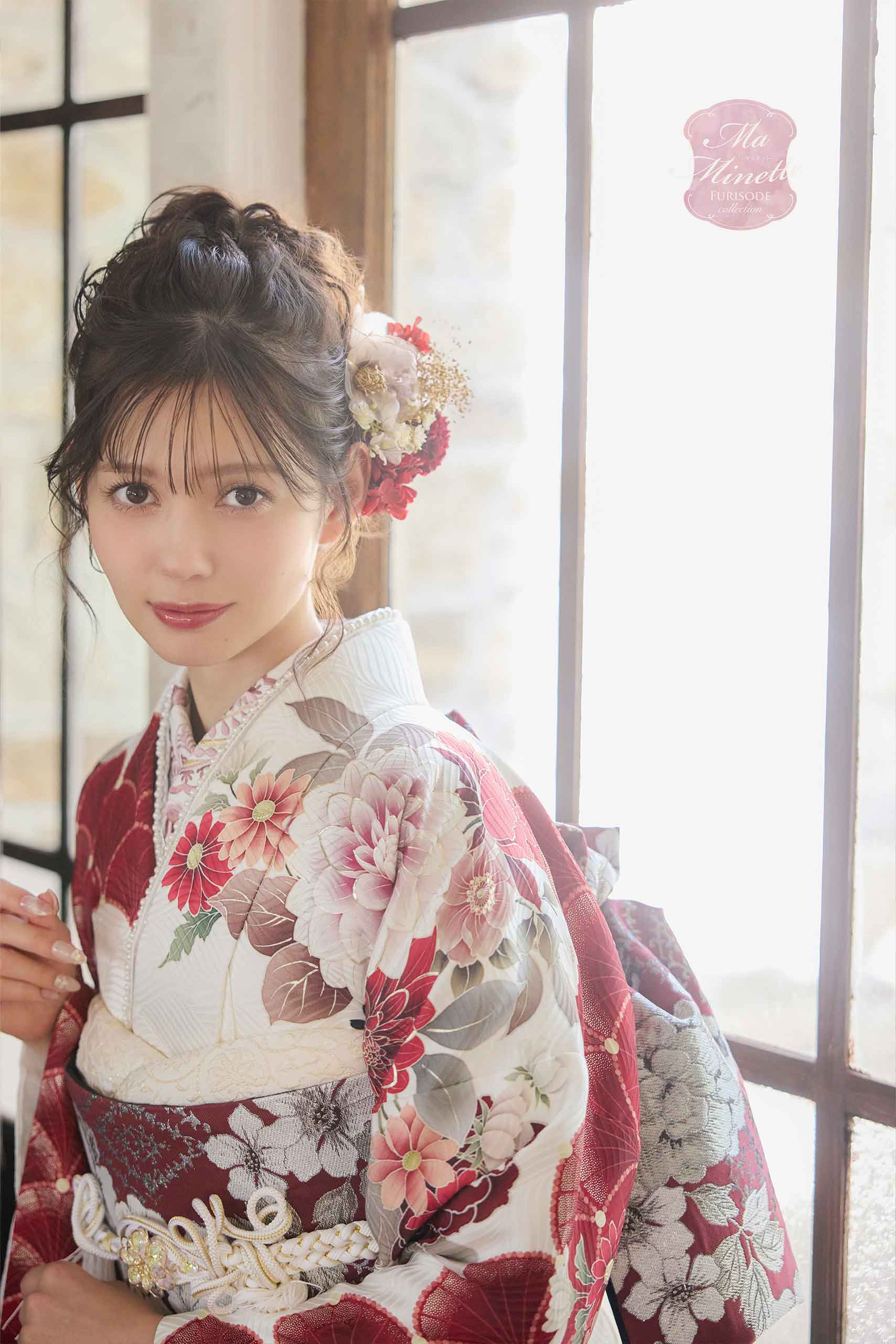 - 写真のコーディネート(帯・帯締め・帯揚げ・重ね襟・半襟・履物・バッグ・ショール等の振袖小物類及び髪飾り・アクセサリー類)は撮影用で、実際のセット内容とは異なります。またコーディネイトの内容により価格が変動する場合がございます。